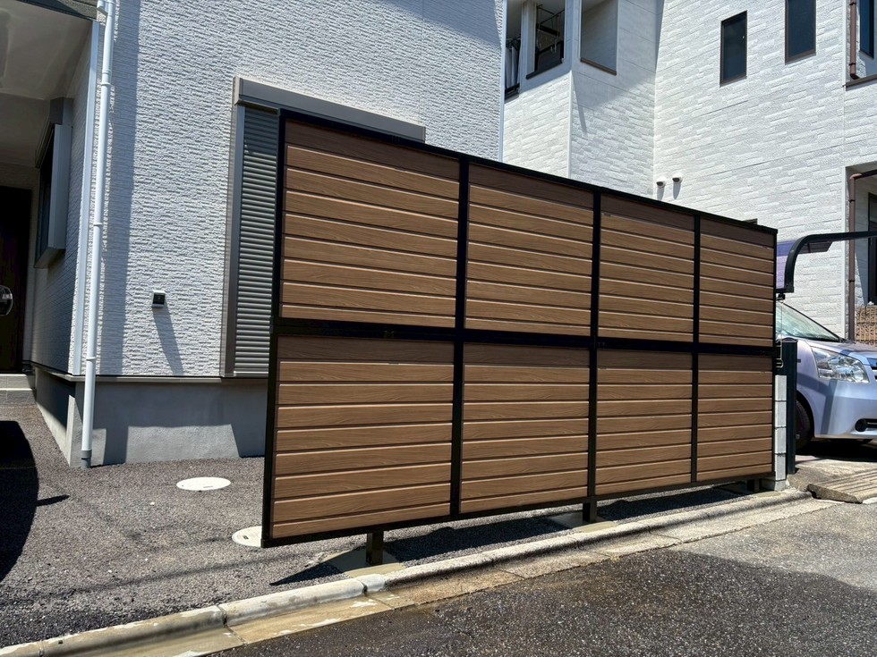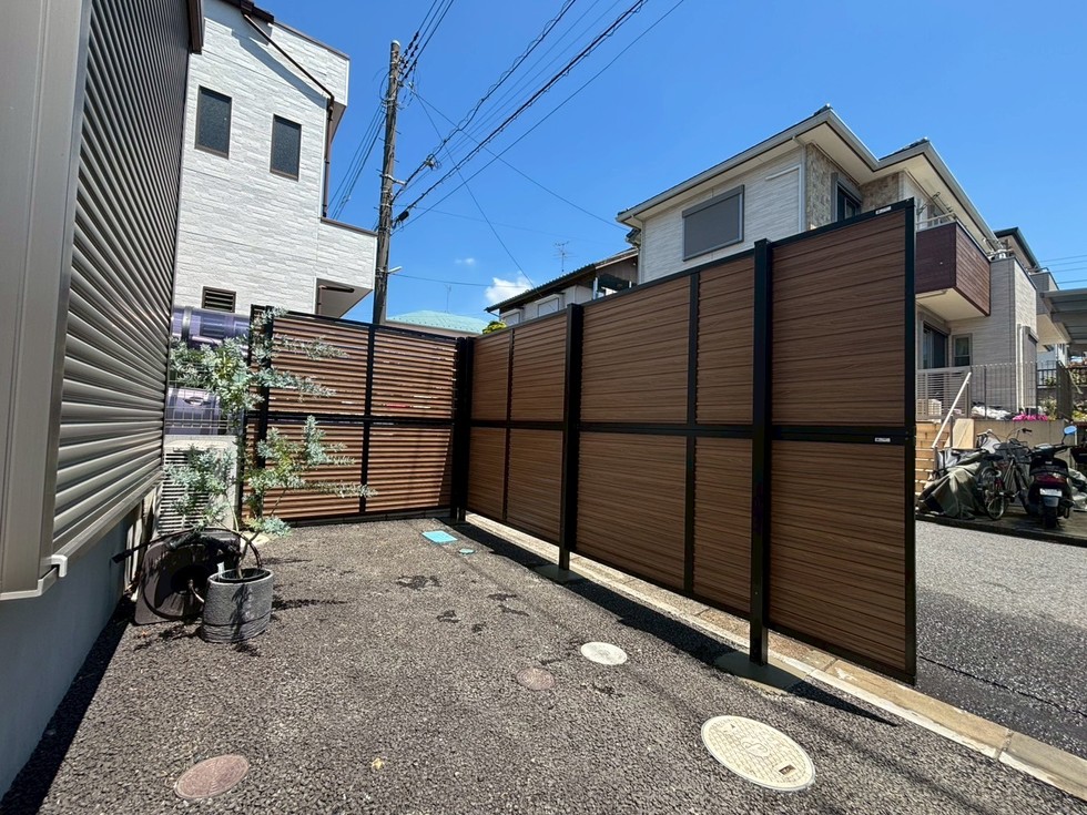 隣家や道路からの視線を遮りつつ、木の温もりを感じられるデザインで、プライバシーと美観を両立。
